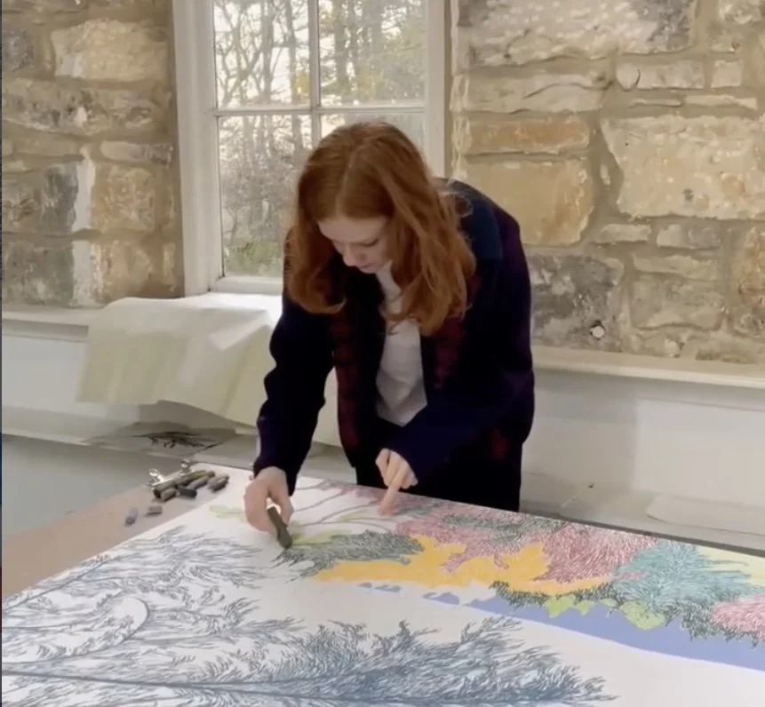 The landscape surrounding VARC has been a significant influence for artists Bethan Harris and Maura Hawkes, since both taking part in residencies at VARC during their time studying at Newcastle University. During the Full Circle residency both artists explored the surrounding landscapes through drawing, printmaking and experimenting with foraged materials.
